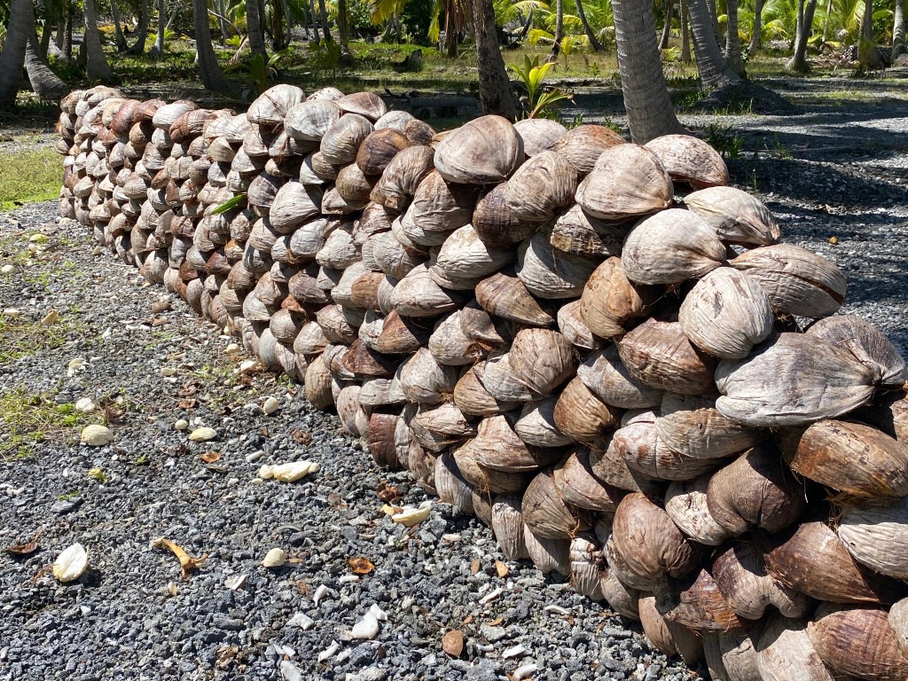 Sylvia nous avait donné rendez-vous au village pour voir la vente de leurs sacs de Coprah. Une fois par mois, les travailleurs se retrouvent sur le quai. Les sacs sont pesés après que la qualité du séchage ai été vérifiée. Les coprah-culteurs seront payés à l’issu de cette journée. C’est un travail dur mais chacun est payé en fonction de son propre travail et surtout cela permet de rester sur son île en touchant suffisamment pour vivre correctement.
